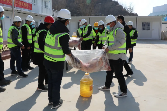 公司慰問項(xiàng)目春節(jié)留崗、依然奮戰(zhàn)在建設(shè)一線的工人們,給他們送去了米、面、油、羊肉等慰問品,為大家送去新春佳節(jié)的美好祝福和深切問候,并囑咐大家,一是要切實(shí)做好節(jié)日期間疫情防控工作,在歡度春節(jié)之余,要時(shí)刻保持警醒,盡量減少出行和聚集;二是要抓好安全生產(chǎn)工作,加強(qiáng)春節(jié)期間施工作業(yè)現(xiàn)場(chǎng)的安全防護(hù)工作,確保施工安全;三是要加強(qiáng)對(duì)就地過年工人們的關(guān)心和關(guān)愛,即使春節(jié)不回家,也要讓工人們感受到大家庭的溫暖,讓大家度過一個(gè)安心、祥和、歡樂的春節(jié)。
