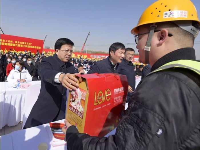 張義光在致辭中表示,作為我省建筑業(yè)的領軍企業(yè),陜西建工將積極響應活動號召,充分發(fā)揮引領示范作用。一是加強活動的組織推動。各單位要切實增強大局意識和責任意識,結合自身實際,做好廣泛宣傳和動員工作。二是充分釋放創(chuàng)新活力。廣大職工要以勞模和先進為榜樣,大力弘揚勞模精神、勞動精神、工匠精神,廣泛參與主題勞動技能競賽和技術創(chuàng)新活動,最大限度激發(fā)創(chuàng)新潛能和創(chuàng)造活力。三是高度重視安全質量工作。要牢固樹立“安全質量高于一切”的理念,嚴格落實安全質量管理制度和崗位責任,杜絕“三違”行為,確?;顒诱S行蜷_展。通過扎實有效的工作,切實推動項目建設和活動深入開展,以良好狀態(tài)和優(yōu)異成績?yōu)殛兾餍聲r代追趕超越貢獻新的更大力量。